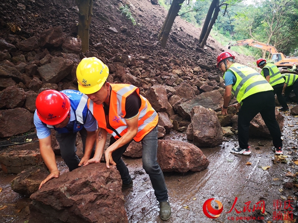 人民网重庆7月23日电 受近期连续强降雨影响,国道318线重庆万州境内发生多处泥石流塌方。正在万州担负公路工程建设任务的中交一公局三公司项目部干部职工闻汛而动,快速投入抢通道路攻坚战。截至7月22日,受损较为严重的万州长岭至长滩段22公里范围内,目前仅有两处较大规模的地方仍在紧张抢通中,除局部路段实行半幅警戒通行外,其余路段均恢复正常通行。